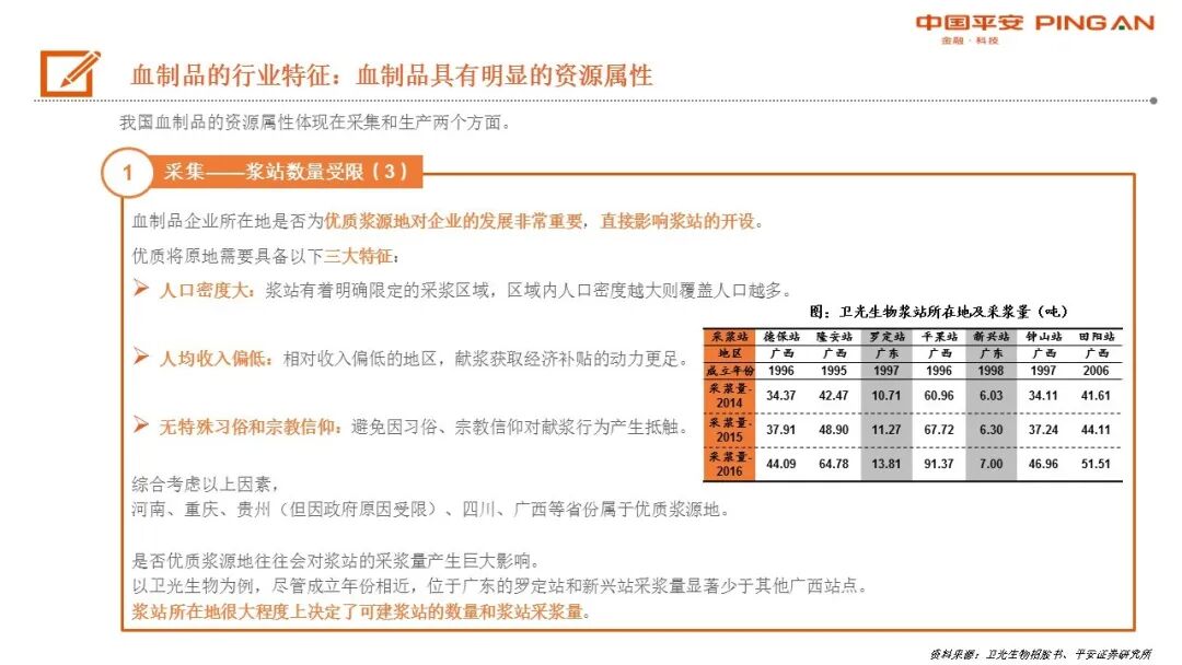 (1)浆站扩张能力强:因为政策因素,近年来新设浆站主要集中在规模较大的企业手中;
