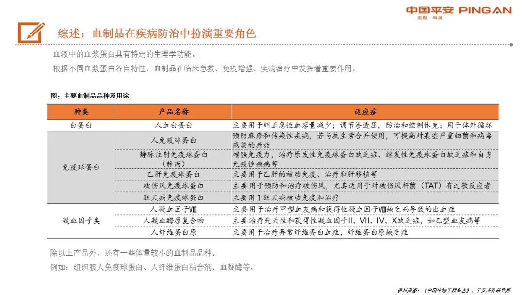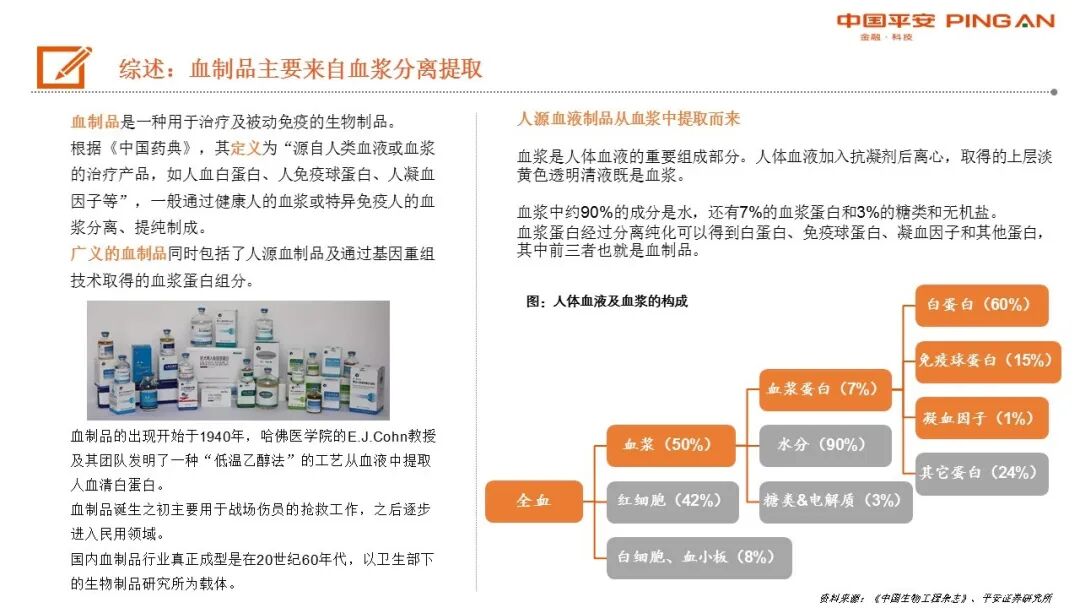 血制品主要来自血浆分离提取,在疾病防治中扮演重要角色。
