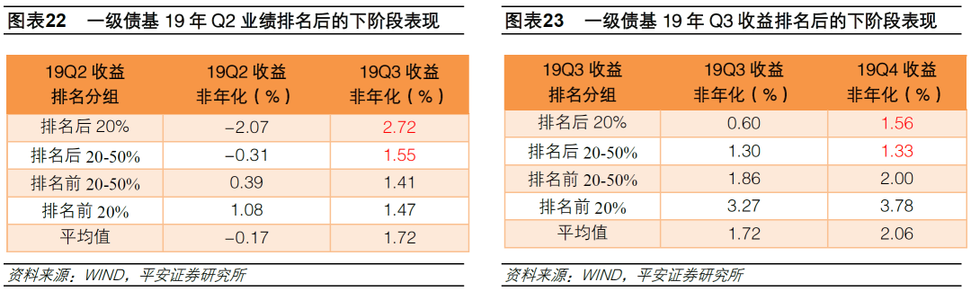 2)基于业绩评价优选基金。从业绩、风险、风险调整收益能力等传统的基金评价角度去优选出过往业绩表现优秀的债券基金,核心是要验证哪些基金的业绩评价指标具有持续性。同时关注基金的流动性风险、基金持有违约债券的风险、杠杆管理水平、基金公司管理水平、基金经理等指标。