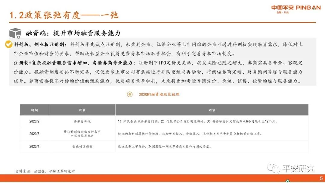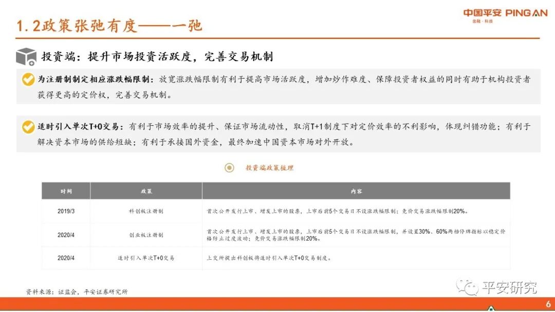 3、提升直接融资服务实体经济的能力。1)注册制:科创板平稳运行为全面推进注册制奠定基础,创业板试点为全面推进注册制再下一城。2)退市制度:取消暂停上市环节,触发条件的股票直接退市,提高上市公司质量。