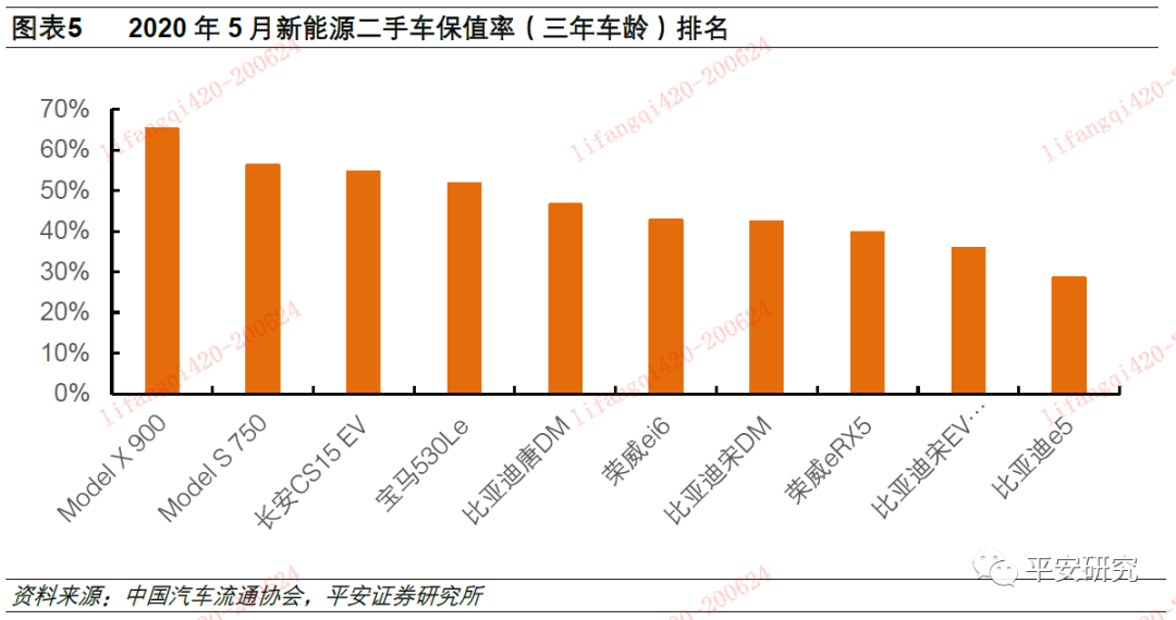 从电动车转让流通的角度来说,百万英里电池有助于提升电动车保值率。目前电动车保值率较低,在二手车市场面临较大困境,主要原因在于电池衰减。目前主机厂在提供电池终身免费质保的时候普遍都限制消费者为首任车主(比亚迪等少数车企除外),这意味着二手车车主无法享受该项服务,因此无益于提升电动车的保值率。而特斯拉的百万英里电池能够极大地延长电池和电动车的使用寿命,意味着相同的使用周期内电池容量的衰减程度更低,即使多次转手也不会影响车辆的正常使用,因此产品的保值率有望得到极大提升,二手车市场也有望激活。
