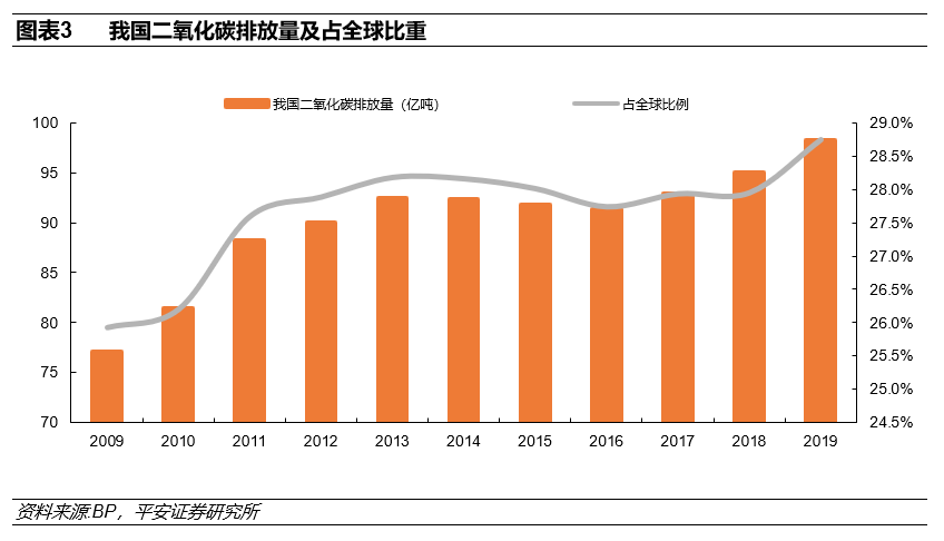 在气候问题日益凸显以及应对气候变化成为全球共识的背景下,如果不调整现有的模式,我国在二氧化碳排放方面可能将面临较现实的国际压力;因此,“碳达峰、碳中和”战略势在必行,结合我国在清洁能源等领域的竞争优势,有望实现化被动为主动。