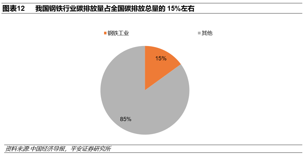 根据中国经济导报于2020年10月14日发表的《钢铁行业是落实碳减排目标的重要责任主体》一文中相关专家提供的数据,我国钢铁行业碳排放量占全国碳排放总量的15%左右,是国内碳排放量最高的制造业行业。