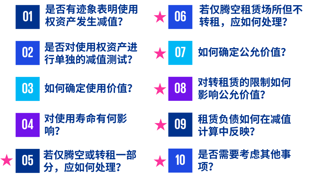进行评估时,企业需要考虑该楼层的使用权是否为一项单独的租赁组成部分,随后确定在哪个层面对该使用权资产进行减值测试(参见问题02)。