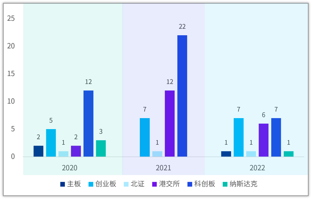 从近三年分年度情况看,2021年医疗器械行业企业从上市数量及融资额角度均达到高峰,而2022年受市场整体影响,上市家数及融资额整体均有所下降。