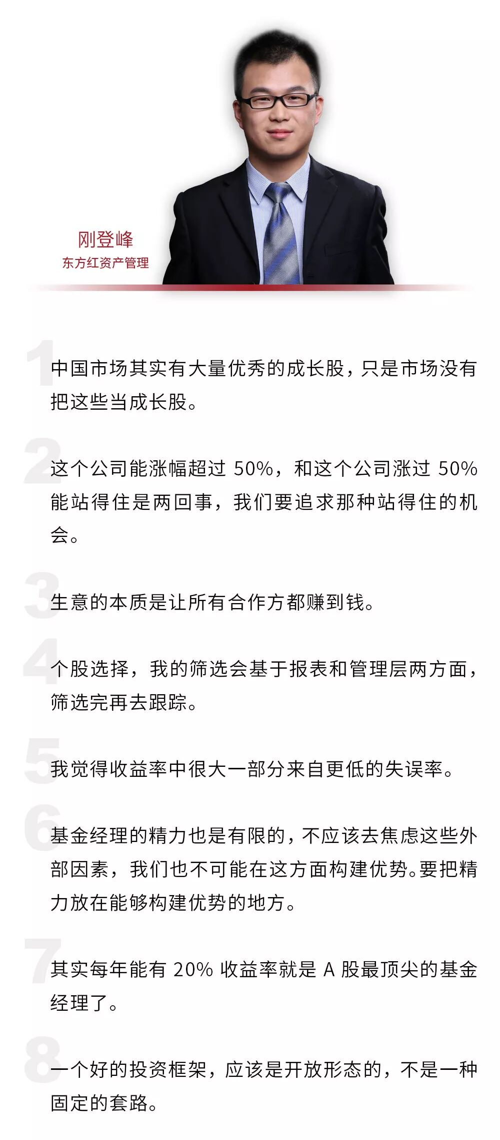 刚登峰 我们一直在丰富投资框架,一个好的投资框架,应该是开放形态的,不是一种固定的套路。我们在不断构建对于更多行业的理解,对于过去的认知进行迭代。
