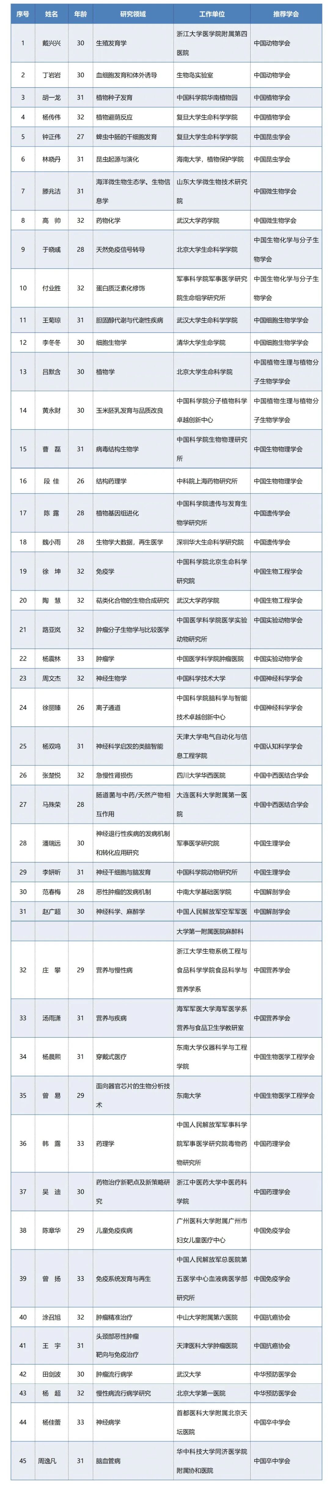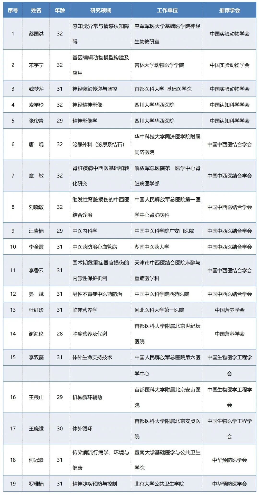 第八届“青年人才托举工程”项目全国创新争先奖牌团队入选人名单