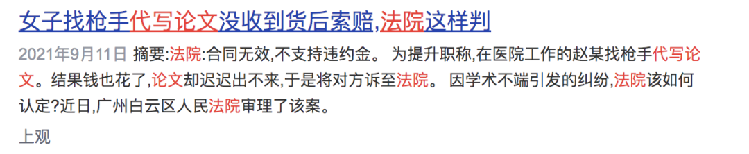 小张的经历并不是个例。据新华网消息,记者在中国裁判文书网以“论文代写”为关键词检索,发现近3年来有20个相关案件的裁判文书。对于代写合同,法院的判决多为“违背公序良俗,协议无效”。