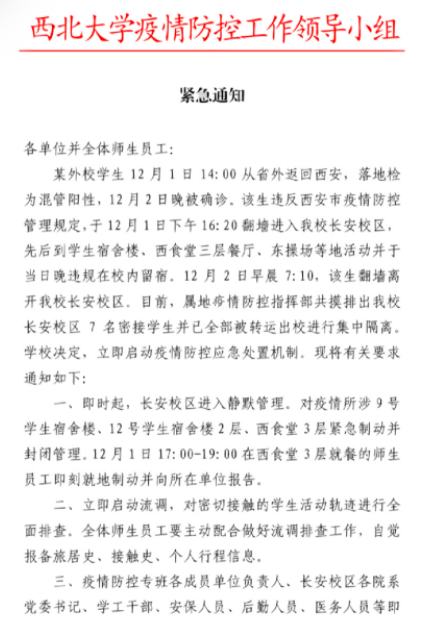 12月3日,西北大学紧急通知: