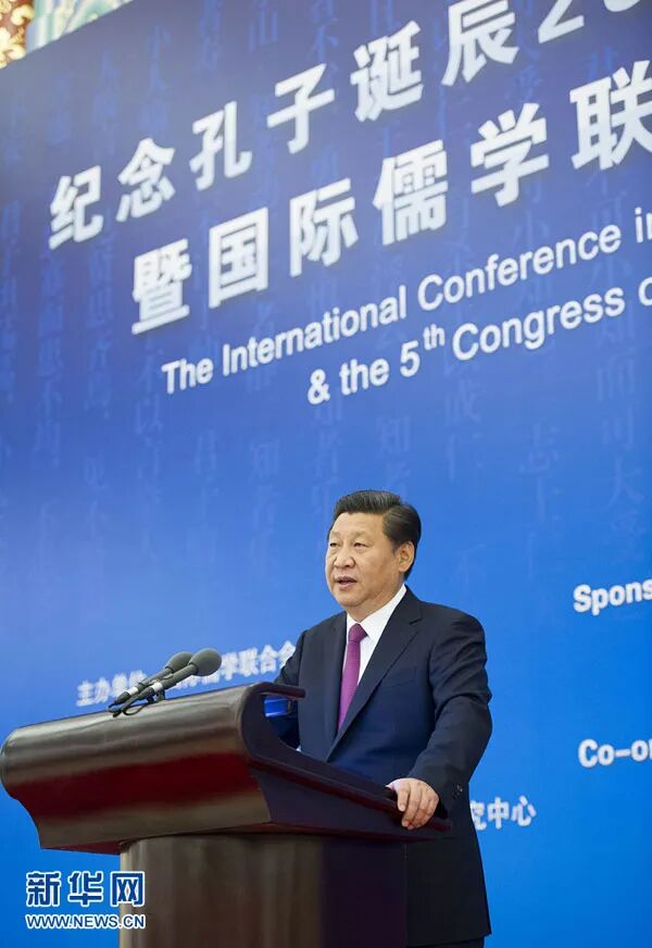 2014年9月24日,习近平在人民大会堂出席纪念孔子诞辰2565周年国际学术研讨会暨国际儒学联合会第五届会员大会开幕会并发表重要讲话。新华社记者 黄敬文 摄