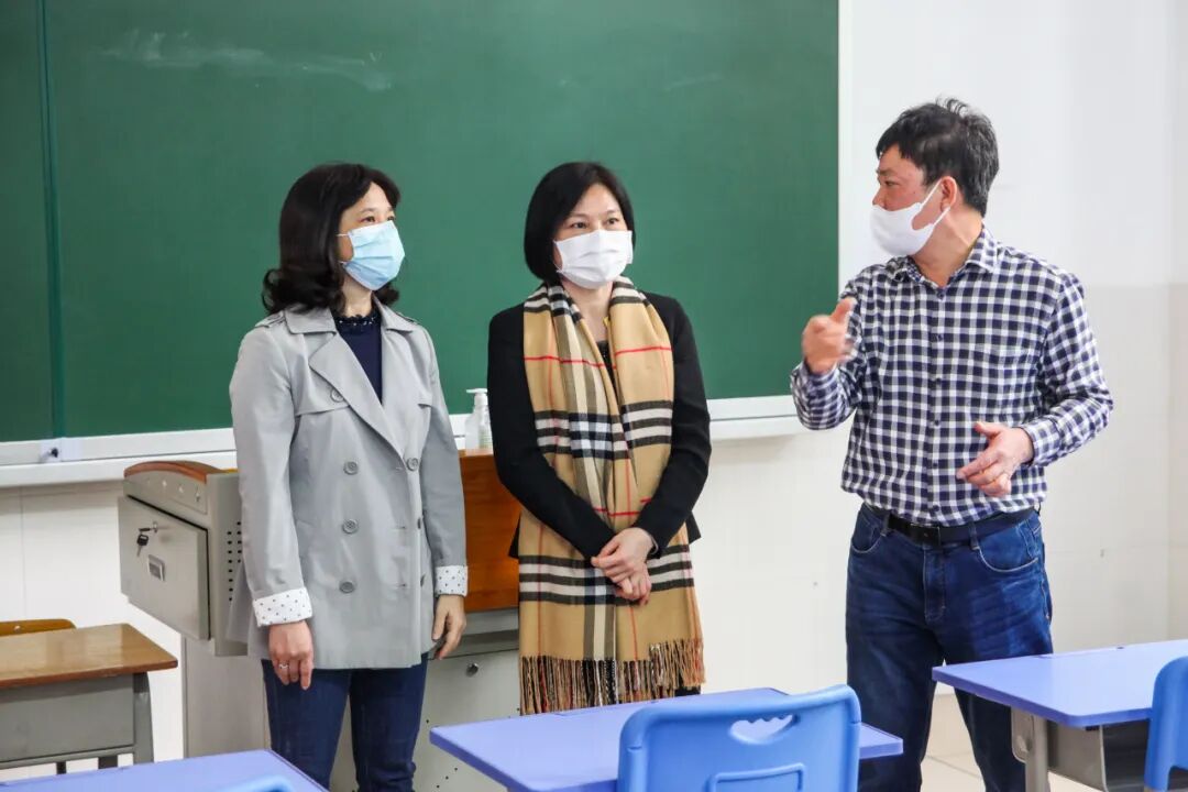 4月14日下午,蓬江区委副书记、区长文丽前往棠下中学、范罗冈小学(滨江校区)和港口中学,实地督导检查校园复学准备工作。