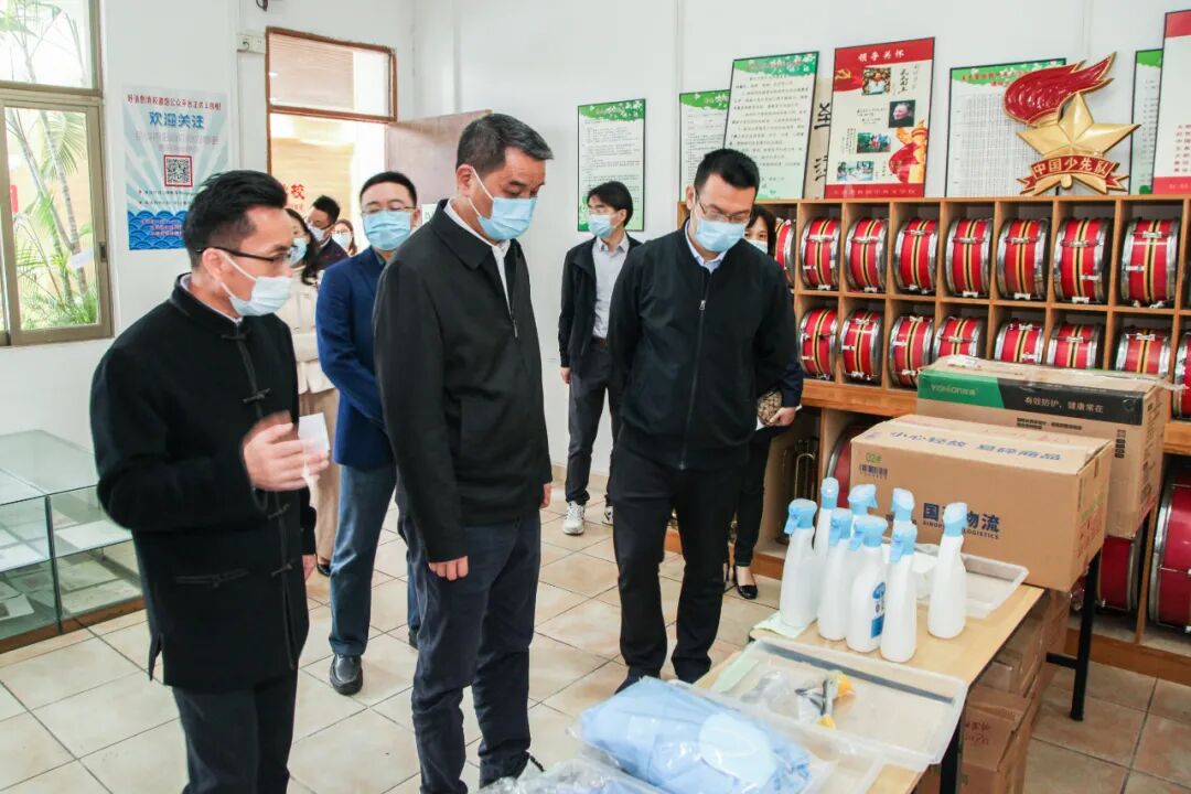 伍培进一行先后前往怡福中学、棠下中学和五邑碧桂园中英文学校,参照学生回校的路线与步骤,走进学校宿舍、食堂、教室、开放活动区域等,检查学生上课、防疫物资储备、学生返校管理等工作。
