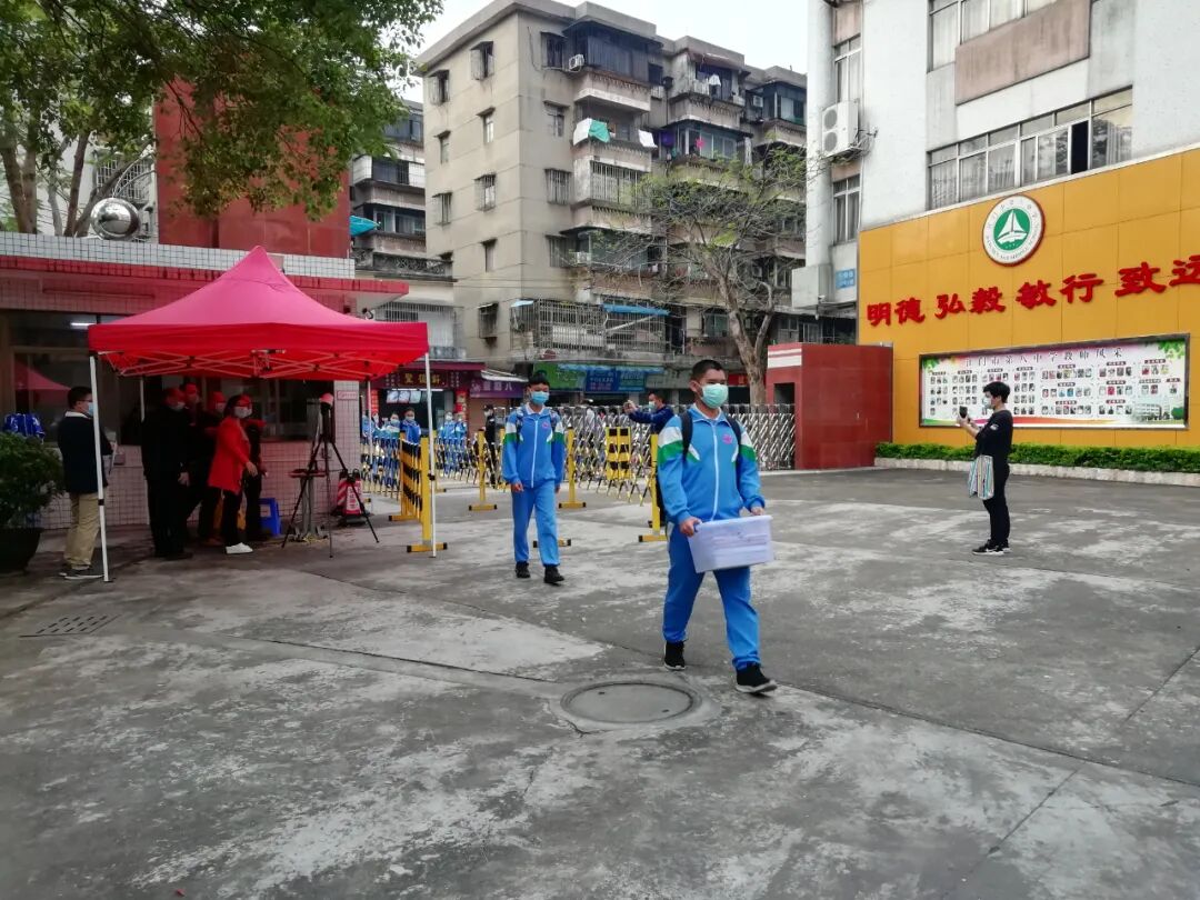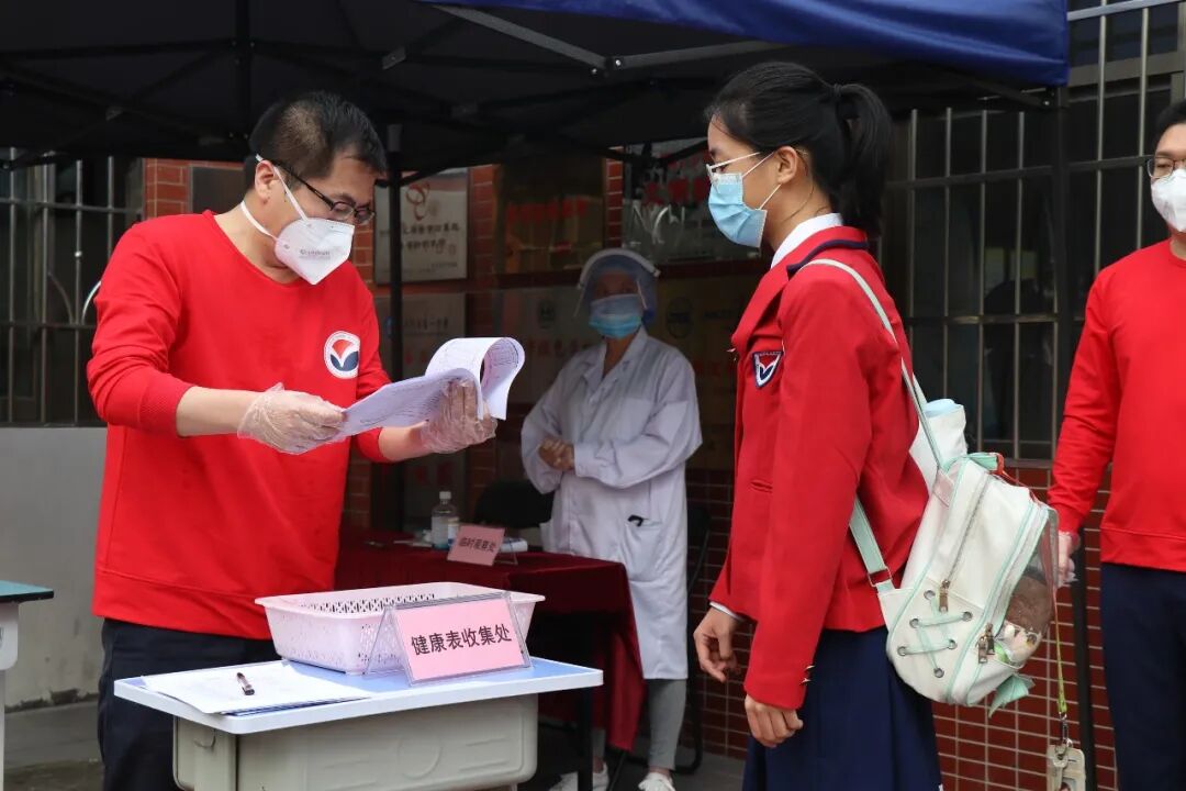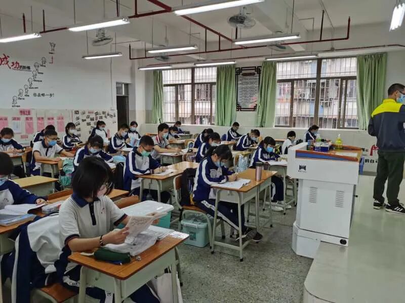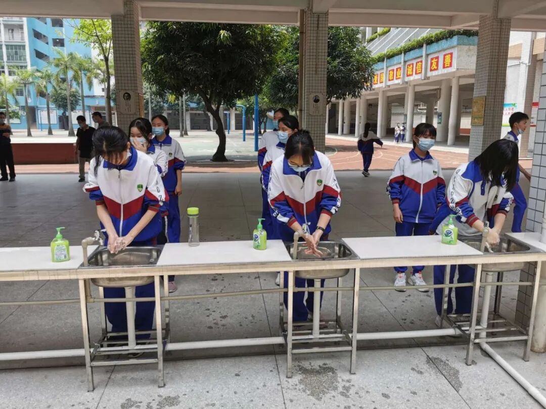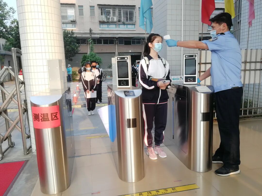 蓬江区各学校严格细致做好学生体温测量、行李消杀等工作,把好入门关。每个环节责任到人,班主任老师在各班门口等待学生,宿管员在宿舍楼维持秩序,学生行走路线固定,全力做好开学教育教学和疫情防控工作,确保学生在校期间“静时有坐标、动时有轨迹”。