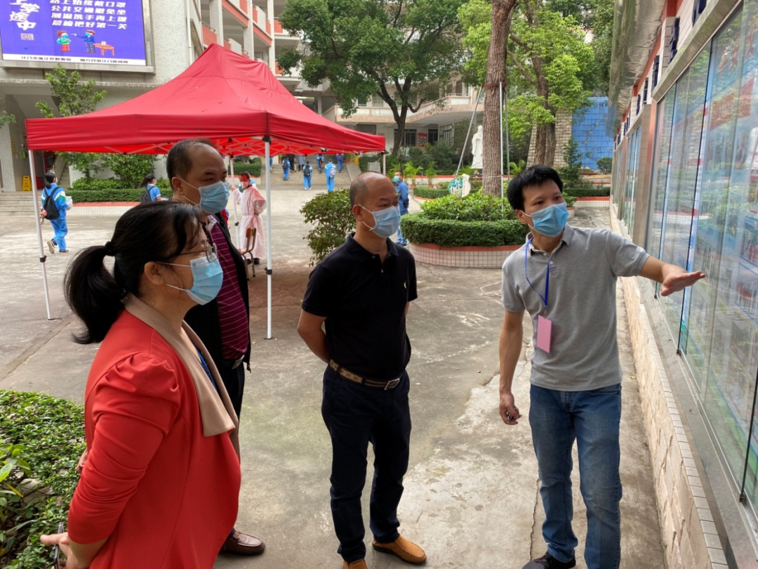 蓬江区卫生健康局相关负责人到江门市第八中学督导疫情防控工作。