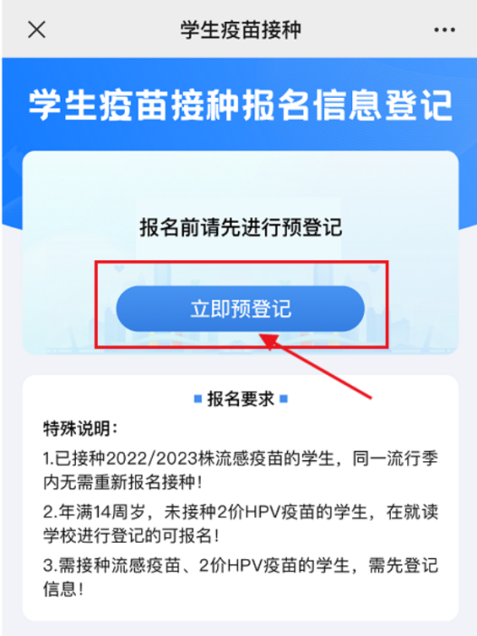 未在深圳接种过的学生,或者已在深圳接种过但无法查询到个案导致无法绑定的,可以选择“立即预登记”进行相关信息的登记完成预登记。所有必填必选通过校验后,则可预登记成功,预登记成功后返回首页进行报名。