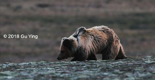 这还不是顾莹最近的一次与青藏高原的野生棕熊“亲密接触”。最近的一次,反而是在一个人类的生活区。当时是晚上,一只母熊带着两只小熊在她的车旁走过,顾莹甚至能听到母熊的喘息声。她屏气凝神,拿起设备赶紧拍摄起来。这是稍纵即逝的机会。