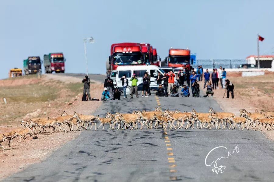 顾莹在可可西里拍了四年,从来没有见过一辆车,在路上礼让藏羚羊。藏羚羊要过马路的时候,每次都是可可西里国家级自然保护区管理局的工作人员,在路上拦车,让出一条道,让羊群通过。