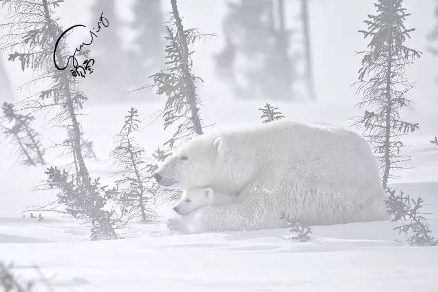 为拍摄到北极熊带着幼崽爬出冬眠洞穴的情景,她去北极地区坚守了一个月。