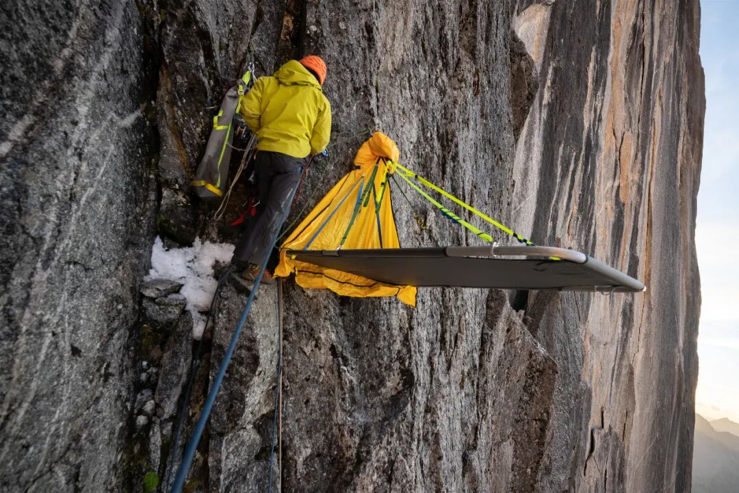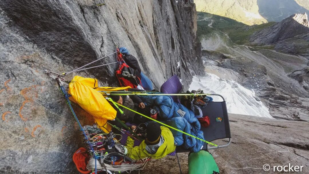 安好Bolt,设好备份保护,固定好绳子和拖拽系统,我掏出超凡依旧的能量餐,冲水摇匀迅速补充能量,再开始搭建吊帐、收拾装备。Rocker还在上升,孙斌在拖包,我待在吊帐里或坐或躺太幸福了。