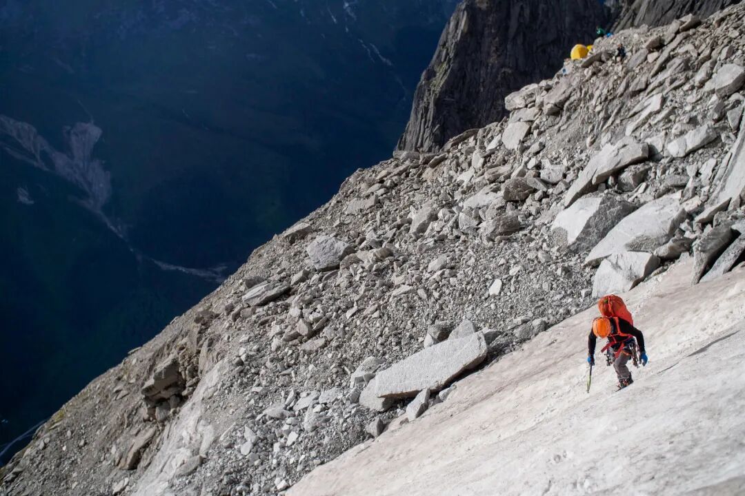等待时感觉时间特别慢,领攀是耗时最长的,跟攀等待时的感受应该更加强烈。后面我推上升器爬绳才体会到和平日的差别,每上一步都特别累,更别说摄影师背着那一堆铁疙瘩和破玻璃,再苦再累不离身,不做摄影师是体会不到那种爱的。