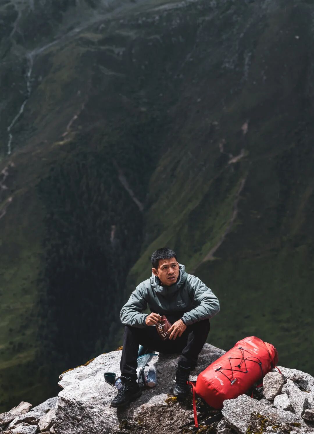 孙斌的衣物防水袋不见了,定是刚才翻腾时扣件挣脱开掉落了。赶紧查看挂在内帐吊绳上的其他物资,攀岩鞋、睡袋、头盔、水瓶都在,貌似没有其他损失。再细数孙斌的损失,羽绒服、冲锋衣、换洗贴身衣物、充电宝和充电线等。