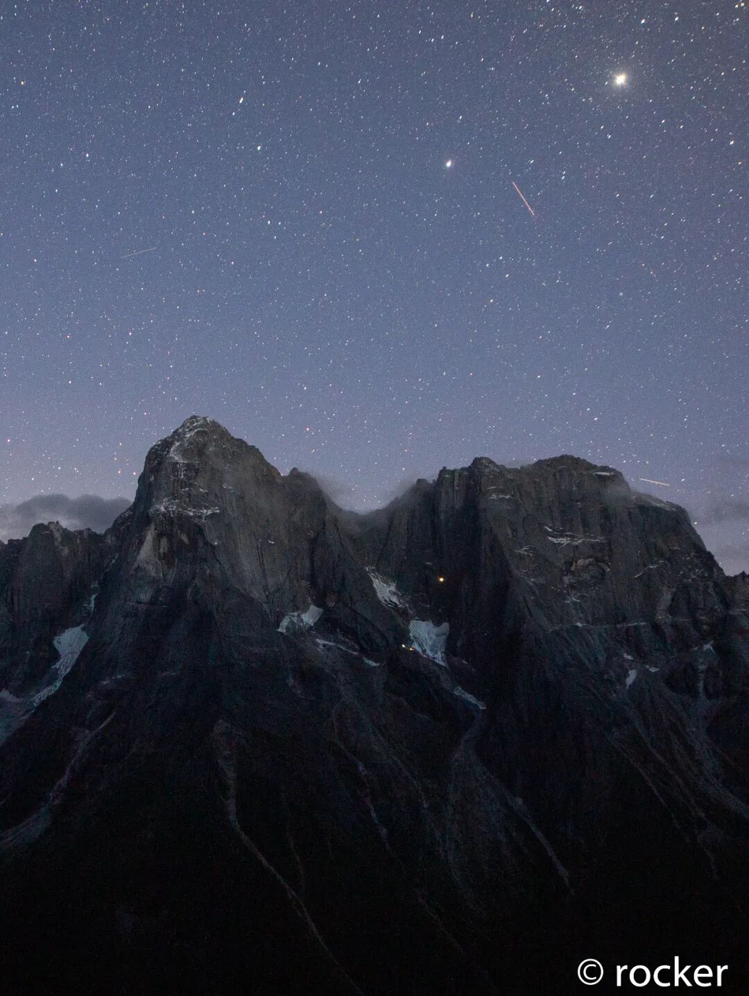 漏水把Rocker的睡袋浸透了,后面一直未干,他每天晚上都是在下面的循环中度过:抖一会儿,睡一会儿,再嘟囔几句。于是继“神兽”之后,Rocker又有了新名号“哼唧小王子”。
