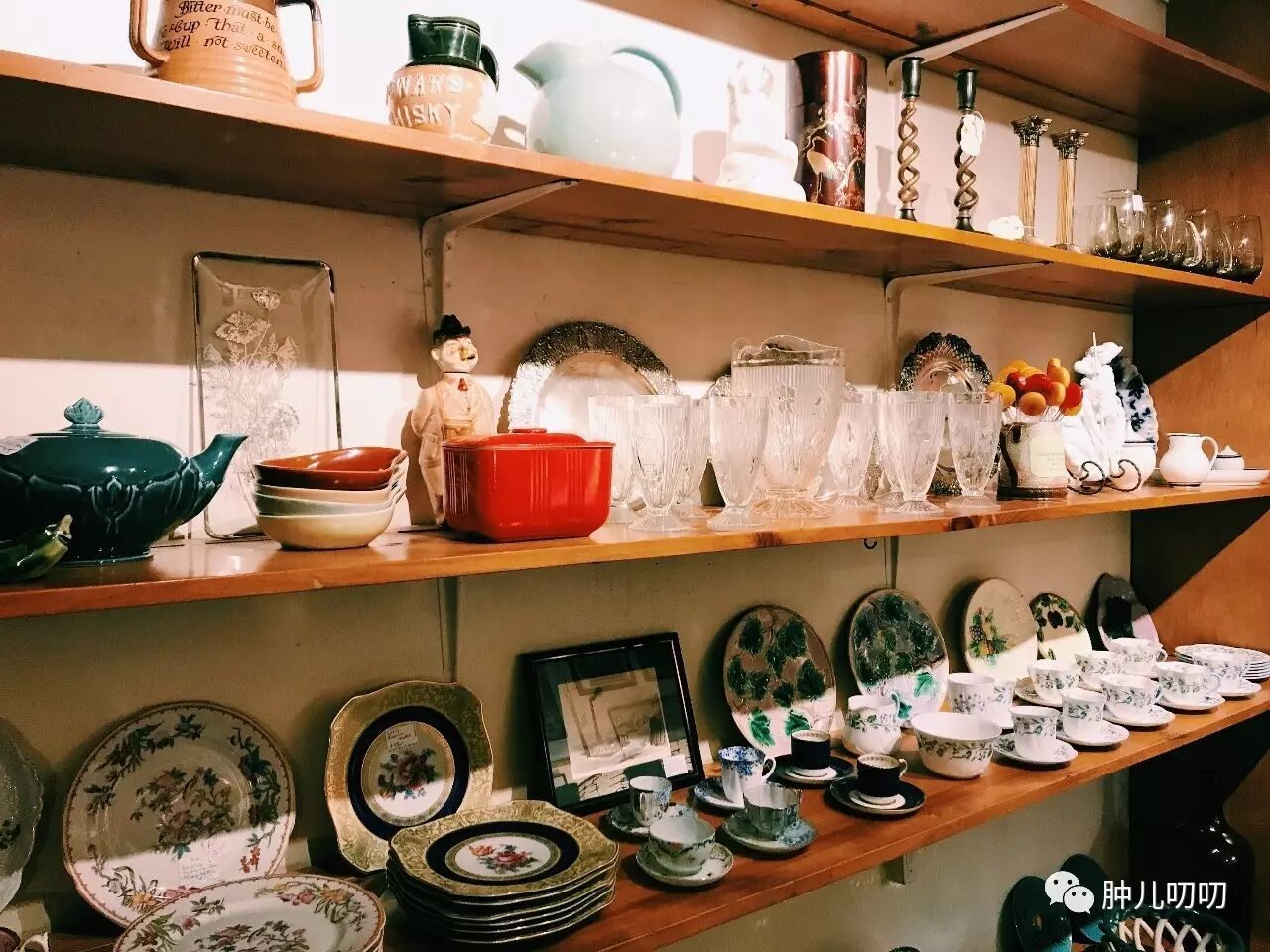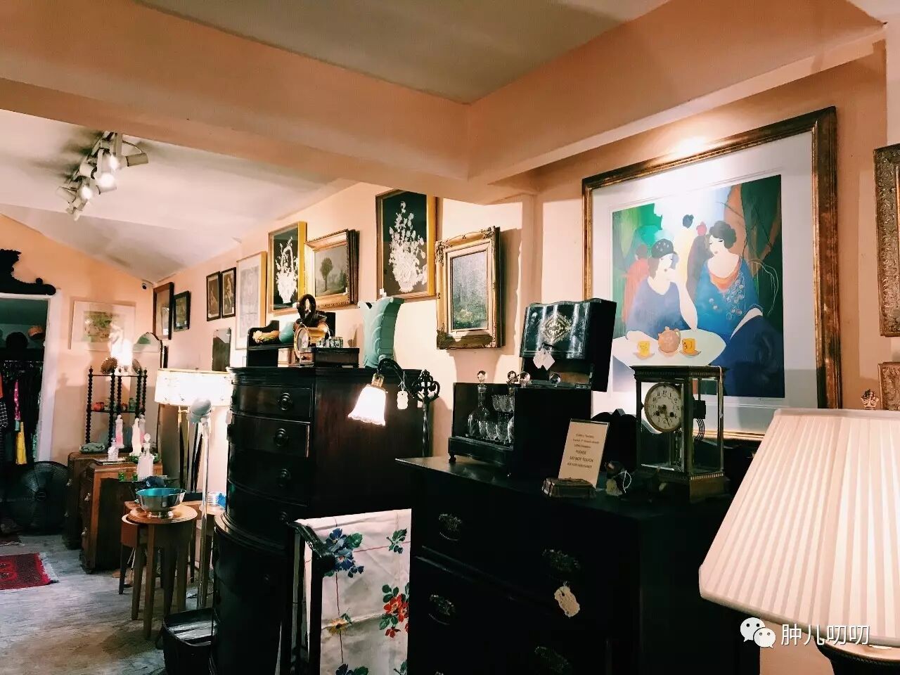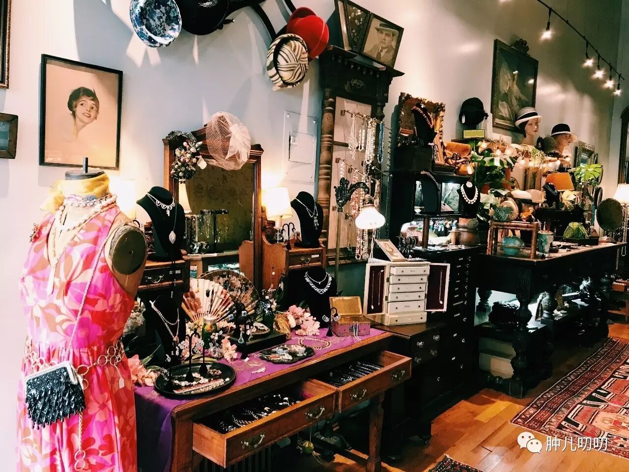 Pippin Home 就在Pippin Vintage Jewelry旁边的小通道进去,切记不能错过。通过小通道后是一番新天地,Pippin Home 藏在一个小花园里,这里主营二手家具、饰品和一小部分古着服装,这家的饰品相对Pippin Vintage Jewelry低价很多,例如手环、胸针2个18刀任挑。这里衣服虽然少,但每件衣服上都挂着店家自己手写的小标签,表明年代、品牌、产地、样式、价格等。本来觉得这家店衣服那么少,肯定款式质量也不会好到拿去,随便拿起一件淡蓝色绣花丝绸衬衫,翻开牌子,看到密密麻麻的写着——”Barbizon” Vintage 40’s/50’s Silk Bedroom Jacket, 瞬间被店家Shock到,多可爱的人才会把每一件旧物都这么认真对待啊。