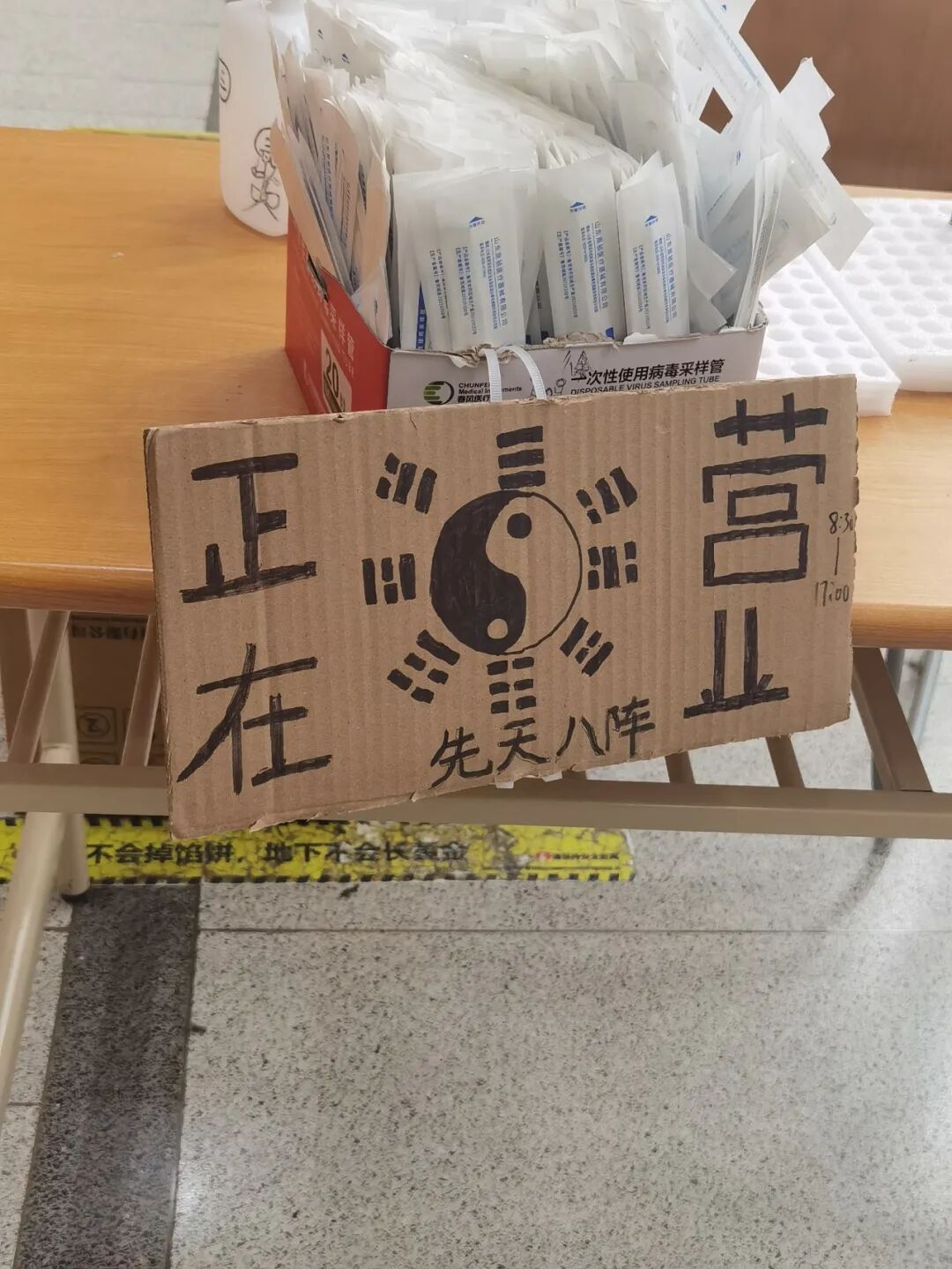 八卦图形状类似钟表的12个时辰,正在营业四个大字分布在八卦图两边,营业时间悄悄地放在边缘,哈哈哈
