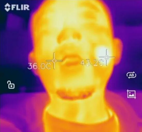 其他美容仪 (左)与Nowmi Lab PIR(右)大范围2分钟 加热对比