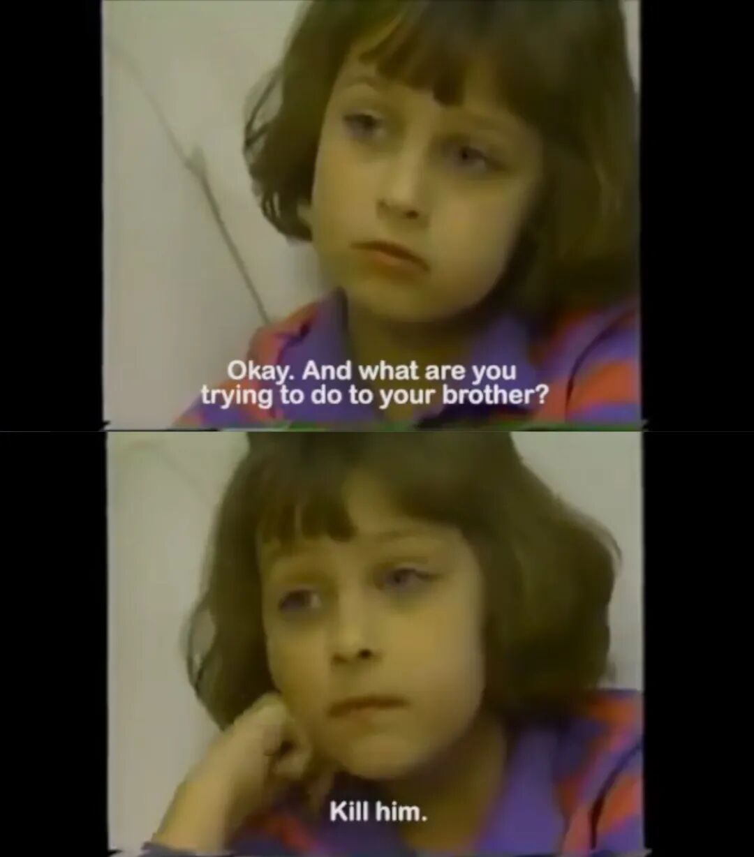 她经常用钢笔和大头针刺弟弟,还在地下室里按着弟弟的头往水泥墙上撞,直到听见妈妈的脚步声才停下,贝丝说她每一次攻击都是想让弟弟去死。