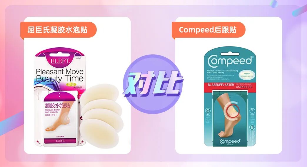 Compeed这款水泡贴相对屈臣氏水泡贴会更薄一些,在防磨脚方面两者效果相当,但两脚前后活动时,能感到屈臣氏这款更厚一点,脚背绷直挤压时更有异物感,Compeed相对薄,柔软一些。