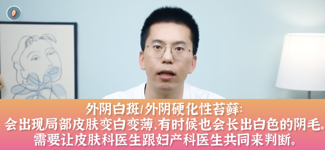 当然,除此之外还有一种情况是外阴白斑,或者外阴硬化性苔藓,也会出现局部皮肤变白变薄,有时候也会长出白色的阴毛,这个时候需要让皮肤科医生或者妇产科医生共同来判断,主要是跟白癜风进行区分。