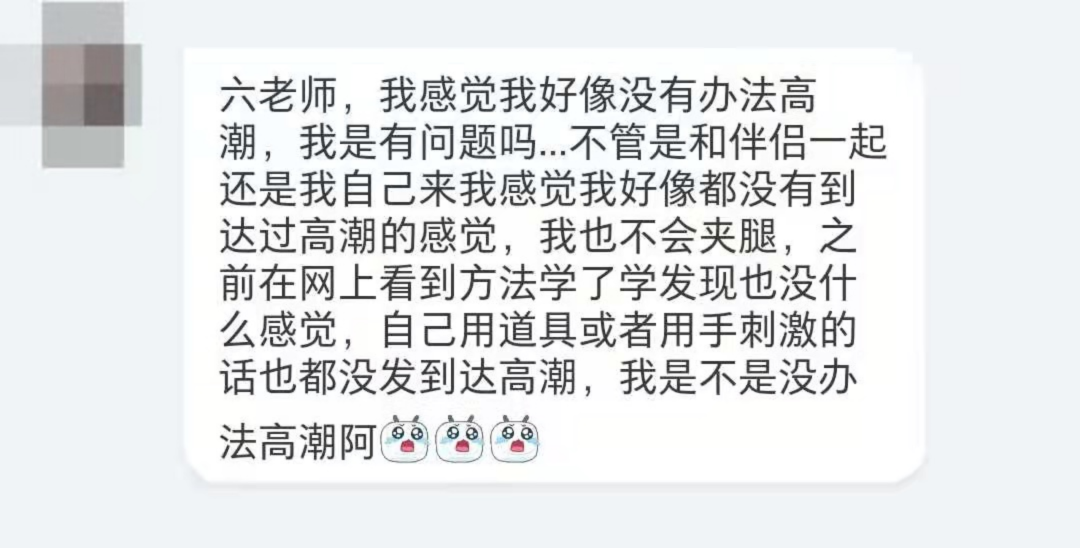 所以回到这封私信,确实有可能就是没有高潮的情况,当然你也可以继续去摸索适合自己的方式,寻求自己的满足,而且你也不是一个人,有很多人是类似这样的情况。