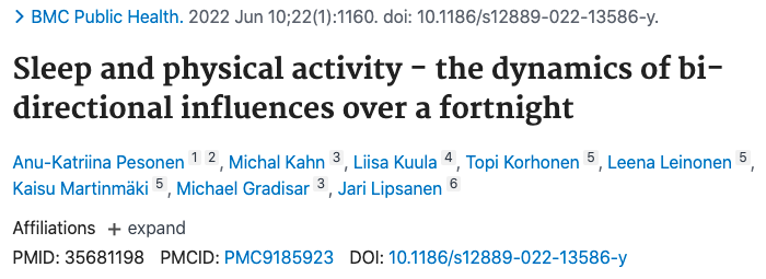 6月发表在《BMC Public Health》上的一项研究发现:白天的剧烈活动过多,会导致晚上睡眠时间减少。
