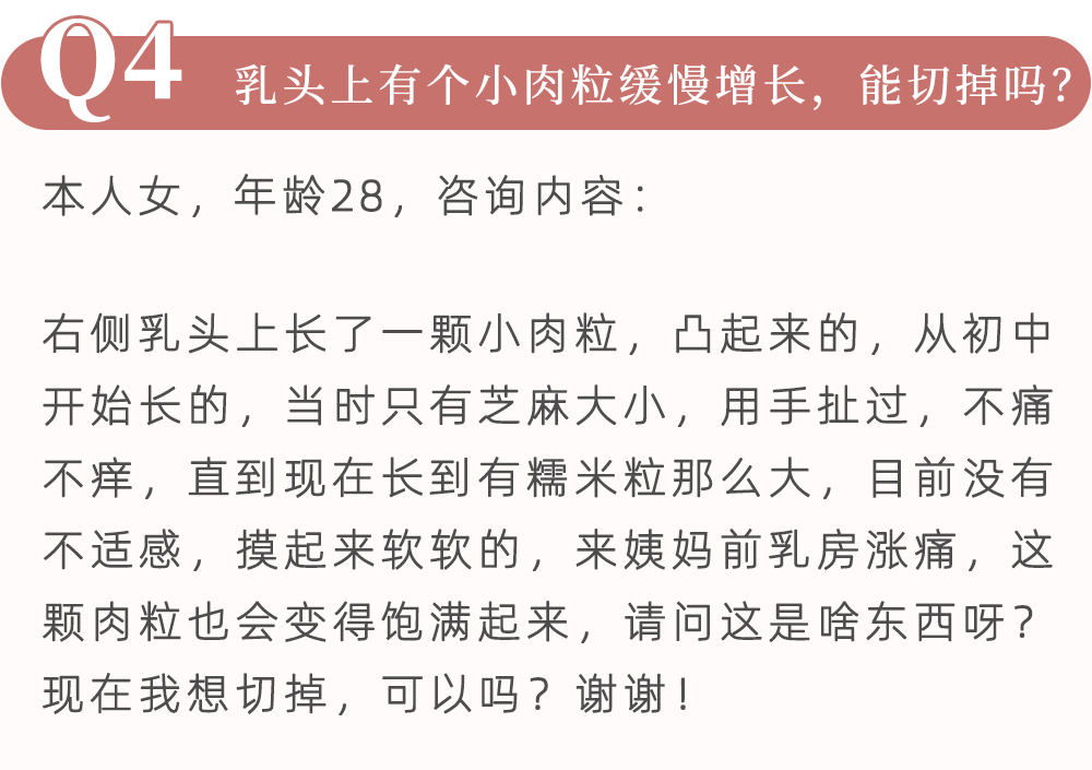 乳头上有个小肉粒在缓慢增长,可以切掉吗?