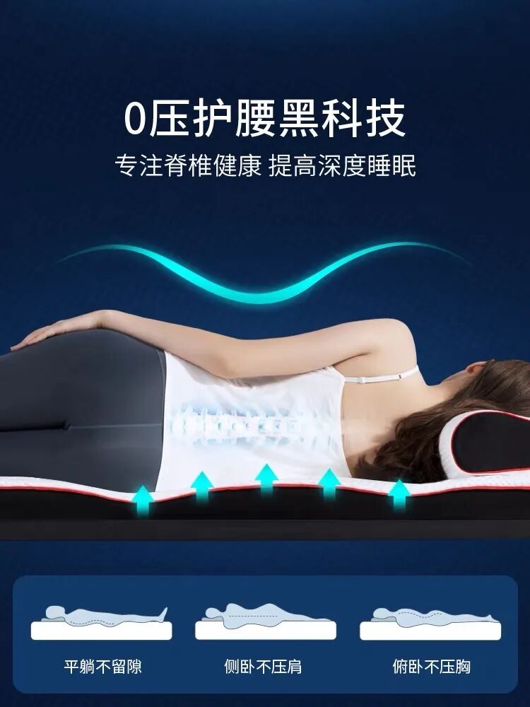 换了一家店之后,这家明确标注了助眠原理,那就是:利用记忆棉的弹性和高恢复性,使人体与床垫贴合,将整个身体的压力均匀地分散到每一个接触面,没有压迫感,从而提高深度睡眠时间。