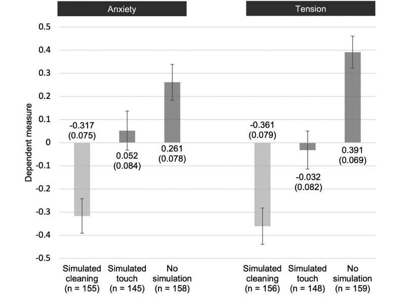 这项研究包含三个试验,第一个试验探究的是视觉模拟清洁行为的解压效果。