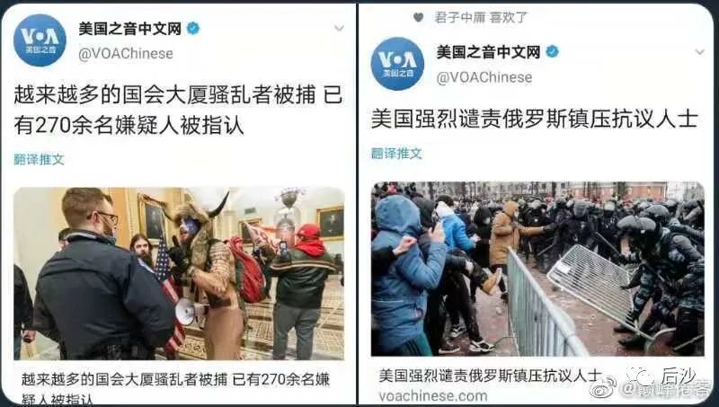 俄罗斯街头这些被称为民主抗争者;美国国会大厦那些叫暴徒,甚至恐怖分子。