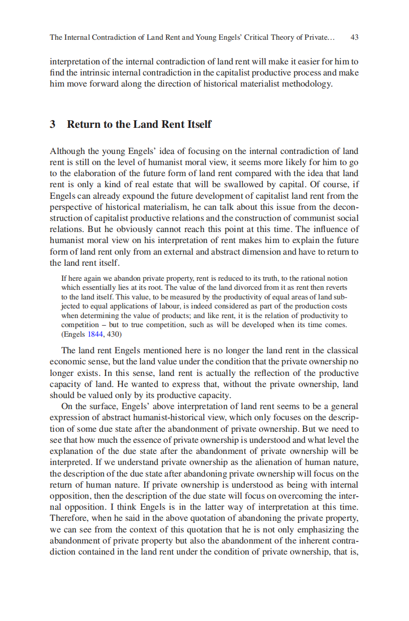 唐正东:地租的内在矛盾性与青年恩格斯的私有制批判理论