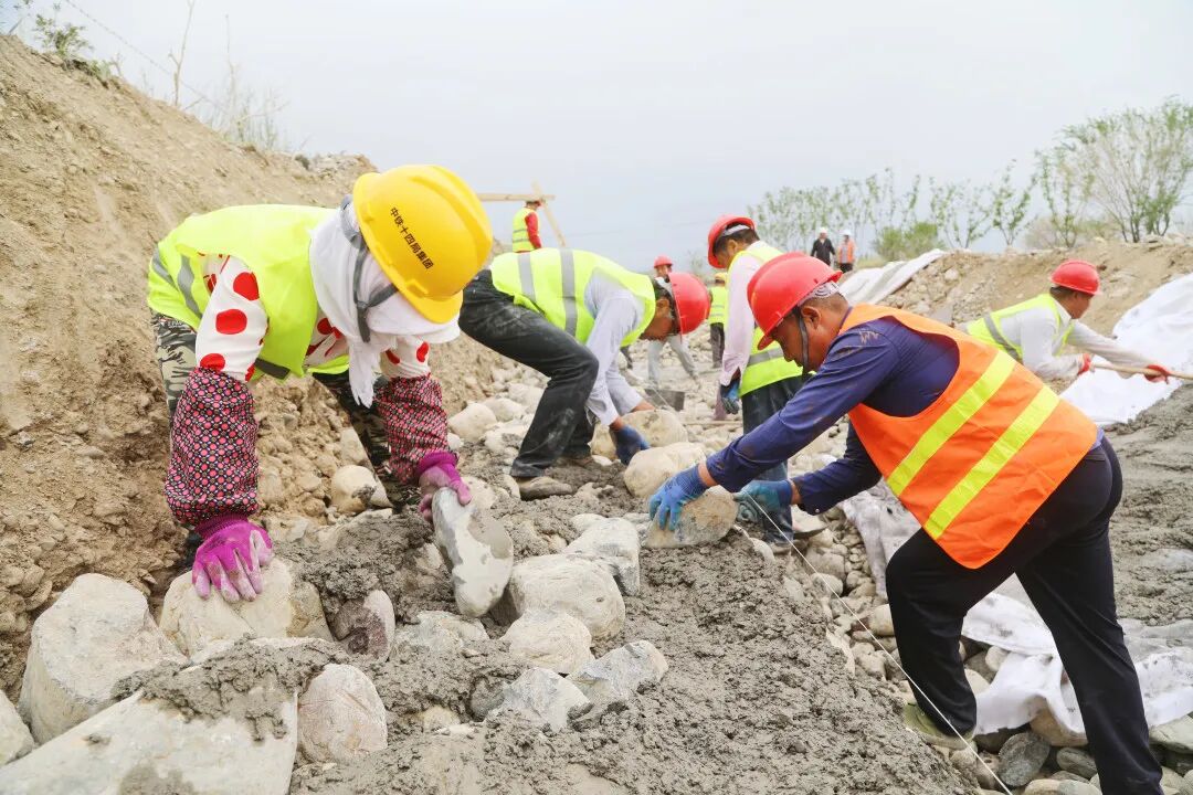 目前项目建设现场有劳务工94人,挖机4台,铲车1台,混凝土搅拌车2台,渣土车4台,现完成左右两边加砌石30%左右,消力池基础开挖80%左右,物资仓库完成10%,大概在7月底完工。