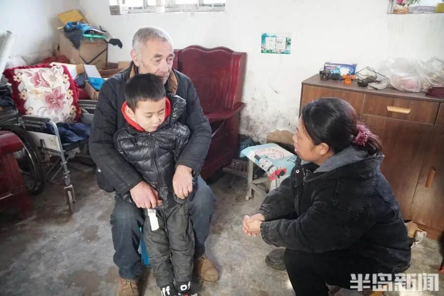 调解无效,考虑到老人和魏文志行动不便,11月19日,马建明带着“巡回法庭”的工作人员来到了肖春玲的家中。 “巡回法庭”是基层人民法院为方便人民群众诉讼,根据本地实际情况,深入农村及交通不便、人员稀少等偏远地区,就地立案、就地开庭、当庭调解、当庭结案的一种审判方式,被百姓们形象地称为“田间法庭”。 庄严的国徽摆到了魏文志的炕头上,一场诉前调解开始了。 “你儿子的抚养权变更到您这边,同时您儿媳妇跟儿子离婚之后,从法律上他们之间就没有互相扶助的义务,那么对于儿子,您准备怎么办?”马建明问。 “她还年轻,孙子还小,儿子以后怎么样还不知道呢,不能耽误全家人。”老人看了一眼躺在床上,没有任何反应的魏文志。 “孩子我来养,孩子他爸我也养着,老爷子我也养着。”肖春玲回答道。 “有没有共同财产?是不是只有这个房子?房子归谁?” “老爷子在一天,这就是他的家,他们住在这个房子里。我会像女儿一样给老爷子养老送终。老爷子不在了,这个房子归孩子。” “好,请你记住你在法庭上承诺的话。”马建明严肃地说。 “因为这个案件比较特殊,属于咱们法庭诉前调解的案件,所以今天我们就征求你们双方的意见,而且我们工作人员也到了现场,了解到你们这个家庭的特殊情况。既然双方都同意的话,法庭允许你们离婚。”马建明宣读着调解结果,一个让他也无能为力的结果。 临别前,法官马建明和几位办案人员凑了数百元现金交给了老人。马建明清楚地知道,即便肖春玲外出打工学医,也很难在短时间内改变家庭目前的困境。 虽然案子调解完了,可马建明的关心并没有放下,持续关心着这个家庭。几天来,他一直发动一些社会的力量,呼吁爱心企业来帮助这个特殊的家庭。 日前,马建明已联系一家驻地爱心企业争取到了帮扶资金,由爱心企业捐助的5000元现金已在12月初送到了老人手里。 压抑,甚至沉重。采访的过程一波三折,但终归有个答案,我们完成了本期采写。 一名命运多舛的女人,一位白发苍苍的父亲,一个本应天真烂漫却已是“小大人”的男孩,一个长年卧床的“植物人”。采访这个特殊家庭的故事,我们的心情有些沉重,起初不知从何落笔。 2021年11月的最后一天,天阴沉沉的,零星的雨不时飘落,气温接近零摄氏度。早6点半左右从市区出发,风卷着落叶敲打着车窗,大约两个小时300里的路程,我们来到采访目的地。宽阔的街道,整洁的路面,几百户的人家,冬日虽然冷清,但每隔一段距离就会有装潢精美的铺面,比如“××酒店”“××便利店”,等等。据介绍,这里并不是落后的村。故事就在这个村里,答案会是怎样? 当记者多年,见多了人间百态,但是,走进肖家院子的一刻,我们还是有些愕然:一条窄窄的长20米左右的胡同路面坑洼,两扇无锁的铁门虚掩,院子是泥土地,散落的空塑料瓶夹杂着塑料袋在风中发抖,青石板铺砌的几步小路通向三间旧砖房。房檐低矮,南向的窗户糊着塑料膜,窗外是一组水泥固定的双杠。肖家人说,那是村委出资安装的,曾辅助魏文志锻炼身体。想必,他们当时以为康复的答案会在这组器械里。 听说有记者来访,肖家及亲人已在10平米左右的堂屋等待。屋小,只容四五人站立,光线昏暗,风依然敲打着窗户。 走进肖家,记者的情绪不自觉地有些压抑,肖家每一个人的脸上都布满愁容,就像命运在这个家庭上空投下的阴霾。肖春玲时不时哭得情绪失控,坐在马扎上的公爹一言不发,表情木然;坐在另外一只马扎上的,是肖春玲82岁的母亲,老人不知自己是个癌症患者,却念念不忘女婿的好;肖春玲的姐姐只能站着,不时陪着抹眼泪,说着妹妹的过去也说着现在。 6岁的小贺宝或许早已经习惯了家里的这一切,他不声不响,时而坐在爷爷的腿上,时而趴在姥姥的肩头,时而依偎在母亲的怀里。大病掏空了这个家,可感情没有散,姨妈数说着外甥的各种“懂事”。清澈的眼神,一脸的懵懂,看着进进出出的人们,不知道小贺宝是否也在寻思他的答案。 趁着采访的间隙,记者特意找到村里的小卖部,给小贺宝买了零食礼包和一箱牛奶,并把随身带着的1000元现金塞到他的手中,虽然微不足道,但是记者希望这点心意能给这个孩子一点力量。 怯生生地接过钱,小贺宝先是一愣,然后将两沓钱合在了一起。姥姥提醒:“不是教给你数数了吗,你能数到30。”小贺宝一笑,口中轻轻念道:“1、2、3……10、11、12……”对折的10张纸币,他愣是给数成了双份。 看到他给出的答案,记者笑不出来。记者问他:“知道这是多少钱吗?” 在数数都很含糊的年龄,要“救爸爸”的信念却毫不含糊,这是朴素的愿望,更是亲情的本能吧。 挣钱为了什么?学针灸为了什么?爷爷养羊为了什么?妈妈工作为了什么?小贺宝似懂非懂,但他会毫不犹豫地给出一个答案:爸爸,别老睡觉,快醒醒吧! 离婚是不是这个家庭唯一的出路?这是一道两难的选题,各方都试图作出“合情合理合法合意”的答案。 赶回青岛的路上,反复回味法官的一番的话:“这个离婚案,我们想挽救的不仅仅是家庭,更是生活。生活的希望在哪?未来!” 院子里,小贺宝专心摆弄着他的玩具盒子——寥寥几个浸在泥水里的瓶盖和圆环;羊圈里,小贺宝欢快地给羊儿喂食,透过镜头,我们捕捉到了他灿烂的笑和他本该有的童真。或许,这就是生活的答案。 小贺宝是这个家的希望,他一天天茁壮成长,积蓄着力量,就像站在