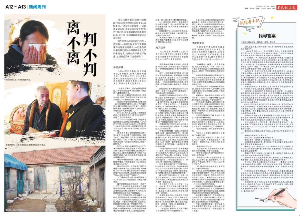 摆在法官马建明面前的也是一道难题:一边是万般无奈下带着孩子异地求生的肖春玲,一边是饱经世事风霜仍要独自照顾植物人儿子的七旬老人,法律的天平要怎样衡量,这场离婚诉求,判还是不判?