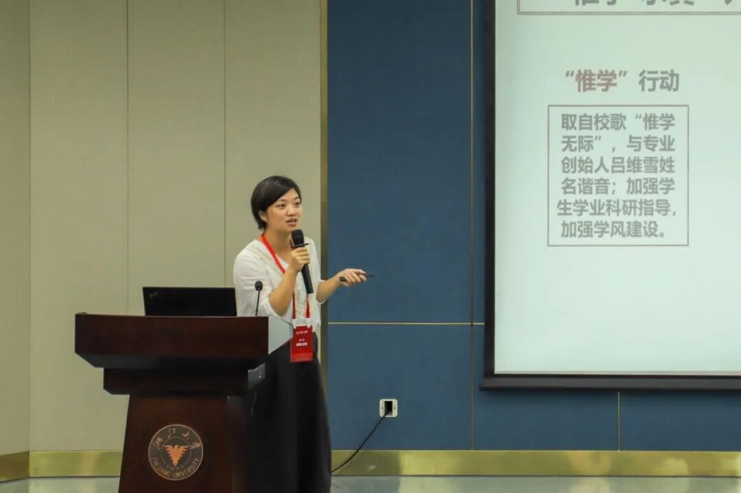 随后副院长周泓老师与副书记杨扬老师分别介绍了学院本科教学工作和思政工作。两位老师详细解读了本科生专业培养方案和思政培养方案,进一步凸显了学院实践、交叉、创新的专业特色,鼓励同学们按照习总书记提出的“年轻人要多尝试学科交叉研究”寄语,努力成为德智体美劳全面发展、具有全球竞争力的高素质创新人才和领导者。