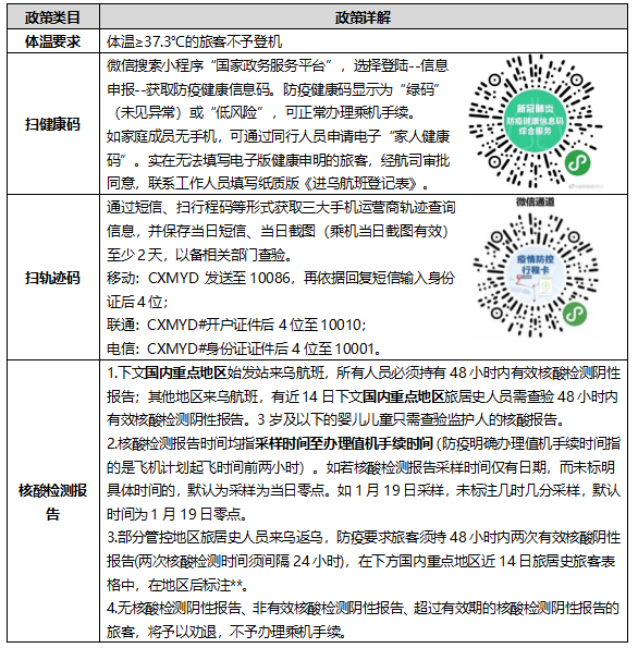 鉴于当前国内中高风险地区不断增多,人员流动带来的疫防压力不断增大,航空器上存在人员交叉感染的风险,建议非必要请留在当地,避免出行风险。如确有急事来乌,将面临集中医学观察风险,会耽误您的行程。如您确定来乌鲁木齐,为方便您在各环节顺利乘机,请您主动申报您近期行程,务必仔细阅读以下告示,并提前做好相应准备。
