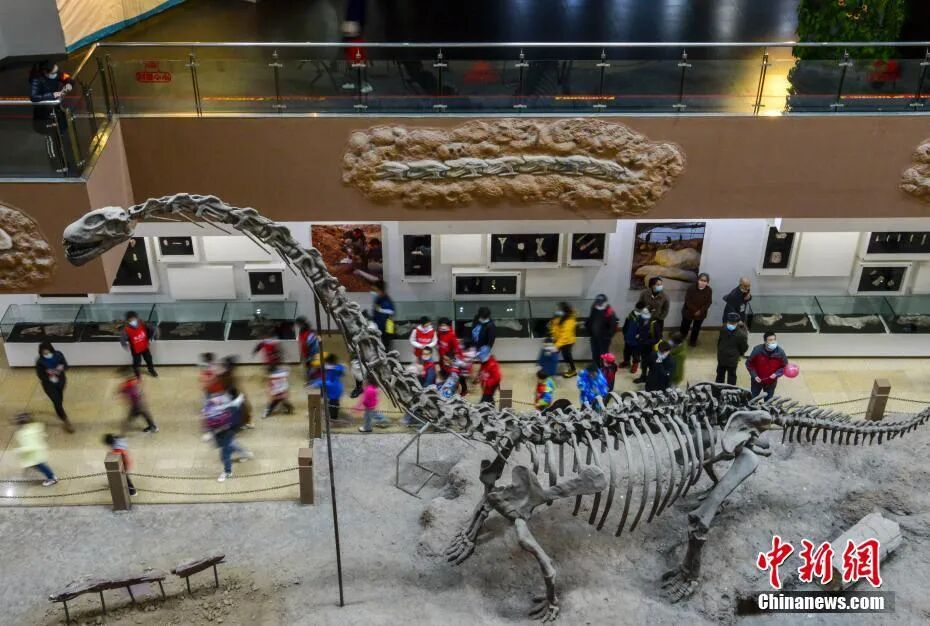 陈列着在新疆发掘的“亚洲第一龙”马门溪龙