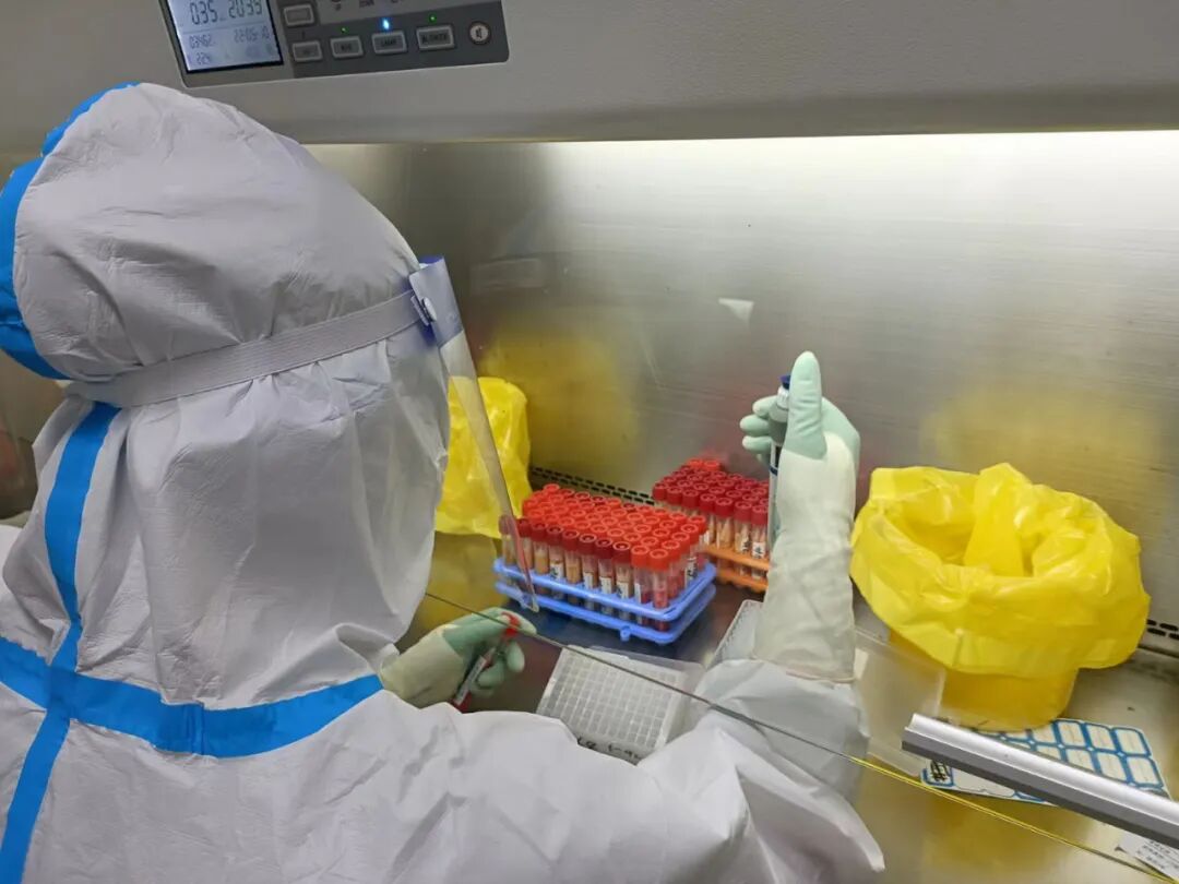 实验室分为收样、数据、质控、物资保障、实验室、消杀组等部门。其中收样、数据、实验组执行24小时轮班工作制、其余各组根据工作需要进行安排,保障实验室24小时正常运转。