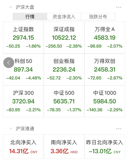 上证指数午后下破3000点整数位关口,为5月10日以来首次,截止收盘沪指跌1.66%,深成指跌2.38%,创业板指跌2.3%。两市共841只个股上涨,3996只个股下跌。![]()