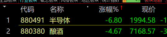 接下来,一起分析一下原因吧。跌幅榜上最大的板块是半导体,消息面上,美国政府7日将31家中国公司、研究机构和其他团体列入所谓“未经核实的名单”,限制它们获得某些受监管的美国半导体技术的能力。酒店旅游、消费板块也在大跌、根据文旅部数据,国庆假期国内旅游出游4.22亿人次,同比下降18.2%。交通部数据显示,国庆假期全国日均旅客发送量3650.6万人次,同比下降36.4%,这一降幅较中秋假期有所收窄。白酒板块大跌,茅台跌了4%,股价创今年6月以来新低,且创近5个月盘中最大跌幅。分析称,由于受到目前疫情外部影响,高端白酒零售端的消费场景出现部分缺失,礼赠与商务宴请较少,导致高端白酒销量锐减。除外部原因外,高端产品渠道货源充足、动销不畅也是导致目前旺季开端遇冷的原因之一。