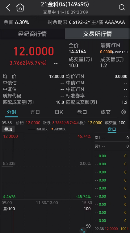 11月10日,地产债延续暖势,“21金科04”涨超45%,触及临停。