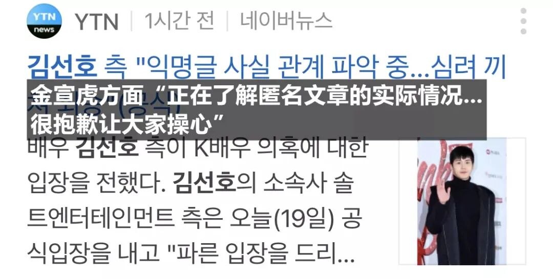 在事情发酵将近三十个小时后,金宣虎经纪公司才迟迟出面发声。
